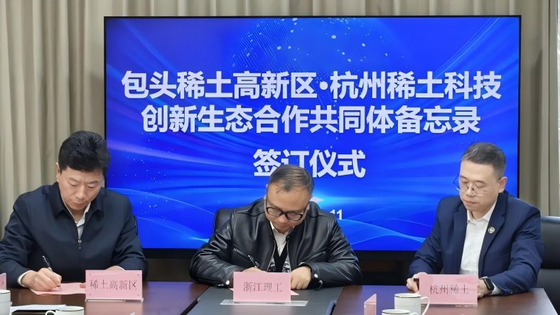 11日,首场活动在杭州启幕。活动现场,稀土高新区与杭州包钢稀土科技发展有限责任公司达成战略合作。双方共同与杭州市余杭区科学技术局明确“稀土+人工智能”和“稀土+新材料”科技创新合作方向,与中国稀土行业协会稀土金属及合金分会、浙江清华长三角研究院杭州分院、浙江理工大学稀土研究中心、浙江旭烨资产管理有限公司和杭州新集智机电有限公司签订《包头稀土高新区・杭州稀土科技创新生态合作共同体备忘录》。备忘录创新提出“1+3+N”双向赋能模式——以合作中心为核心枢纽,搭建“稀土+创新创业大赛”“稀土+‘双招双引’联络驿站”“稀土+合作共同体”三大支撑平台,将持续汇聚N个人才、成果与项目资源。