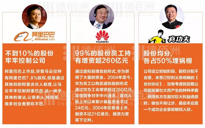 马云持股7.4%却能掌控阿里巴巴,任正非持股不到1%却能手握大权,通过股权,对外融资,对内激励,最终成为世界五百强