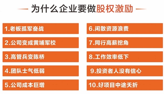 他们的成功并不是做大了之后才做股权激励的,而是通过股权激励一步步把事业做大的!赚小钱靠个人,成大业靠团队。通过股权激励把老板个人的梦想变成全体员工的梦想是企业发展过程中必须做的一件大事,是企业成长过程中最重要的一次变革!