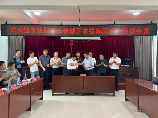 ★为深入贯彻习近平总书记在内蒙古考察时的重要讲话重要指示精神,加强与东三省的联通,加快融入长春现代化都市圈,落实兴安盟党政考察团赴吉林省长春市考察学习活动安排。7月23日至24日,兴安盟农牧局赴吉林省长春市,与长春市畜牧业管理局开展合作对接,考察团一行参观了长春城开农投畜牧发展有限公司,并进行座谈交流。8月10日至11日,长春城开农业投资发展集团有限公司总畜牧师马明宽,长春城开农投畜牧发展有限公司董事长王忠宽一行5人赴兴安盟进行深度考察对接。兴安盟农牧局党组书记、局长李振林、副局长王玉泉,各旗县市、盟农牧局相关人员参加活动。考察组一行先后深入乌兰浩特市国辉牧草有限公司、科右前旗兴安肉牛交易市场、扎赉特旗宝力根花三位一体育肥牛养殖场、胡尔勒千头牧场、阿拉坦花肉牛养殖场、巴彦扎拉嘎石头城子交易市场,考察调研稻秸市场、肉牛养殖场租赁、肉牛交易市场等,并在扎赉特旗巴彦扎拉嘎乡召开放母收犊养殖大户意向座谈会。兴安盟农牧局与长春城开农业投资发展集团有限公司签署合作备忘录。