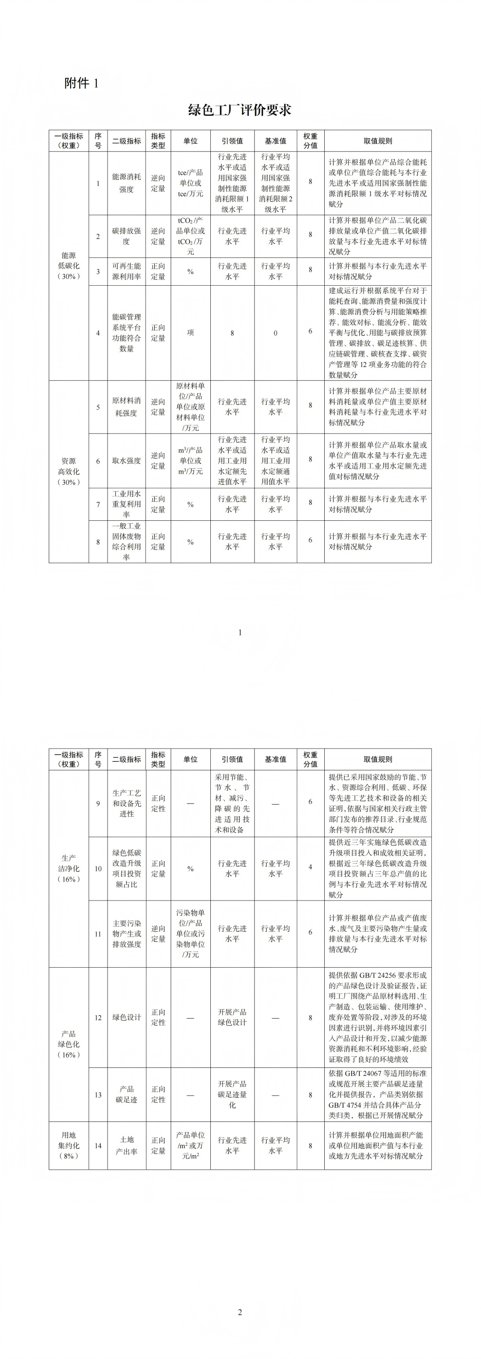 本年度推荐工作包括绿色工厂、绿色工业园区,满足《办法》有关要求的企业或园区按照自愿的原则,对照新的评价要求(相关指标要求见附件1、2)进行自评价。省级工业和信息化主管部门按照“优中选优、宁缺毋滥”的原则进行遴选,推荐的企业或园区原则上不低于本地区已有国家绿色工厂、绿色工业园区的平均水平。